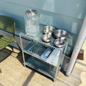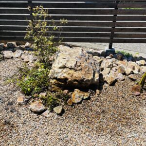 お庭にミストシャワーの水が落ちてきて見た目も涼しいかんじ。