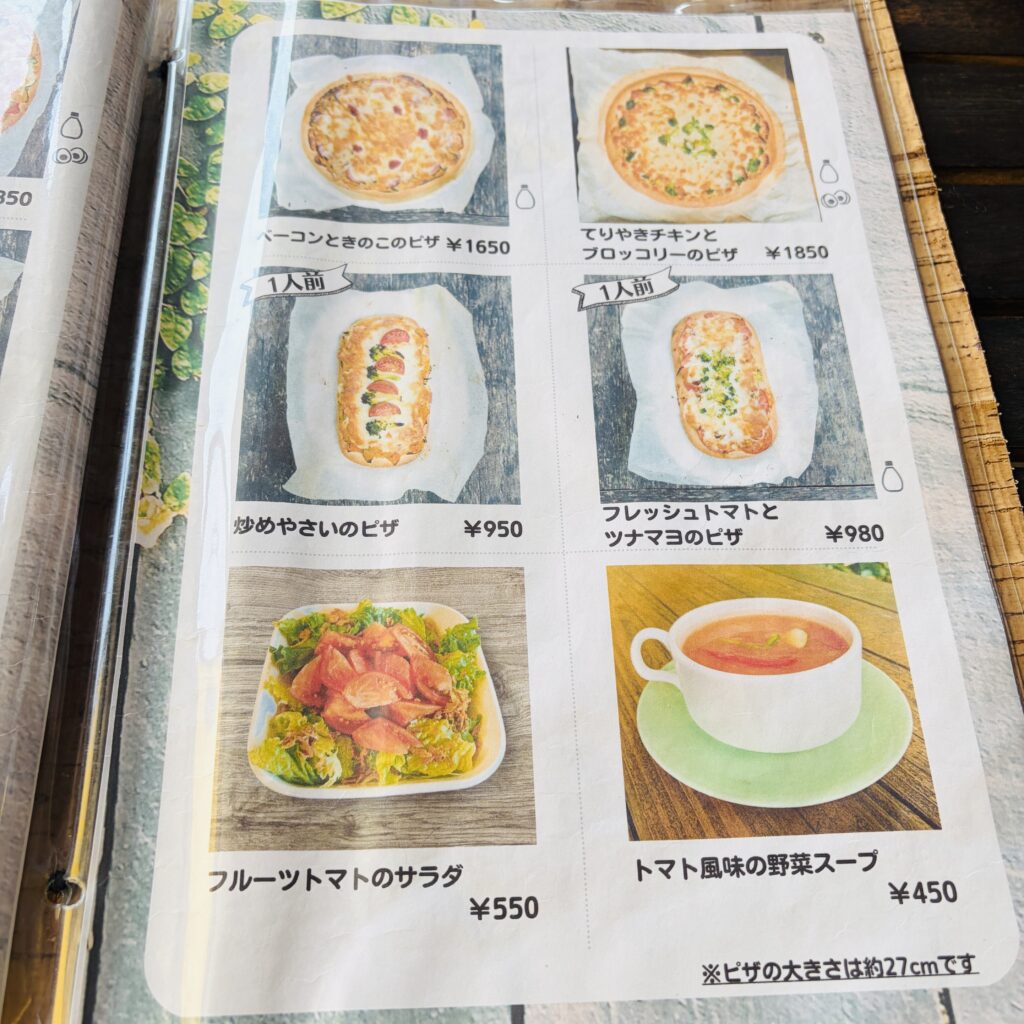 今回注文したのは、「フルーツトマトのピザ」と「ツナのとブロッコリーのピザ」