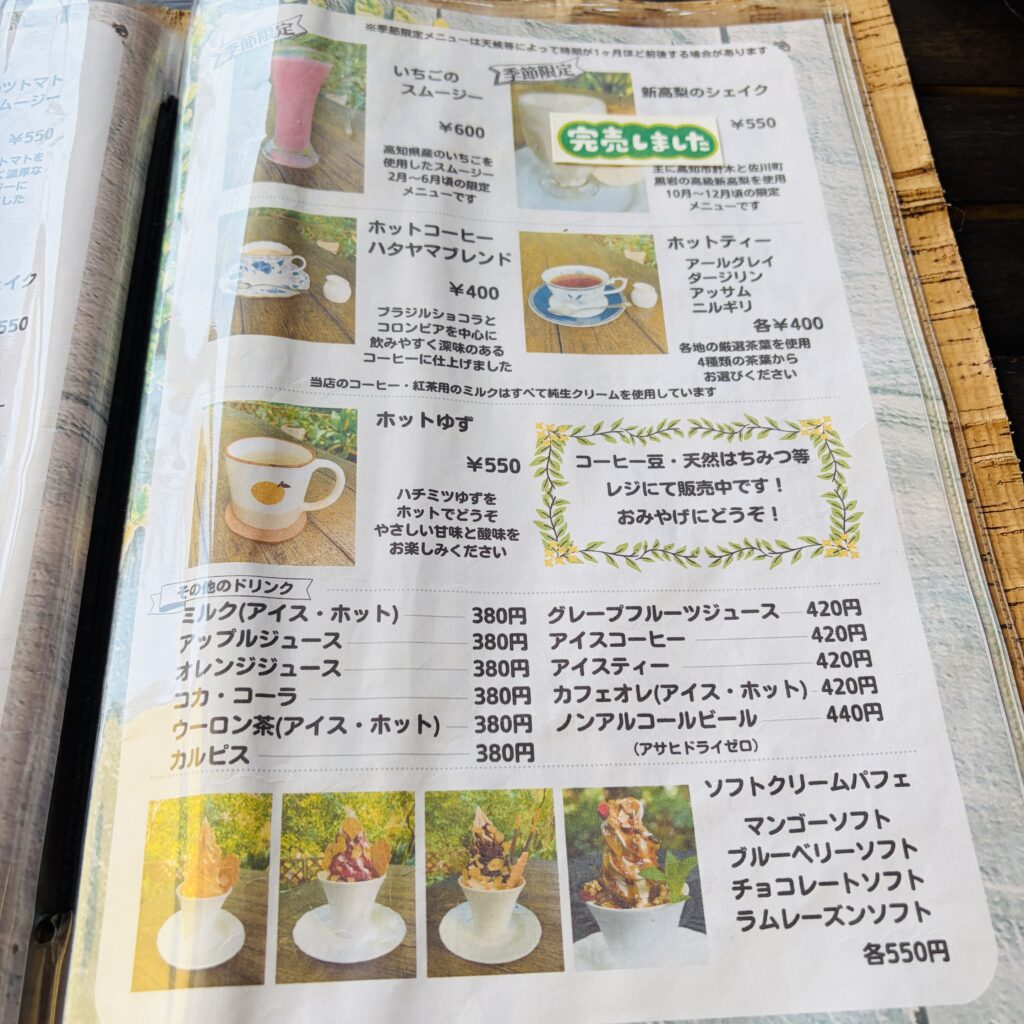ドリンクやデザートメニューもありますよ。